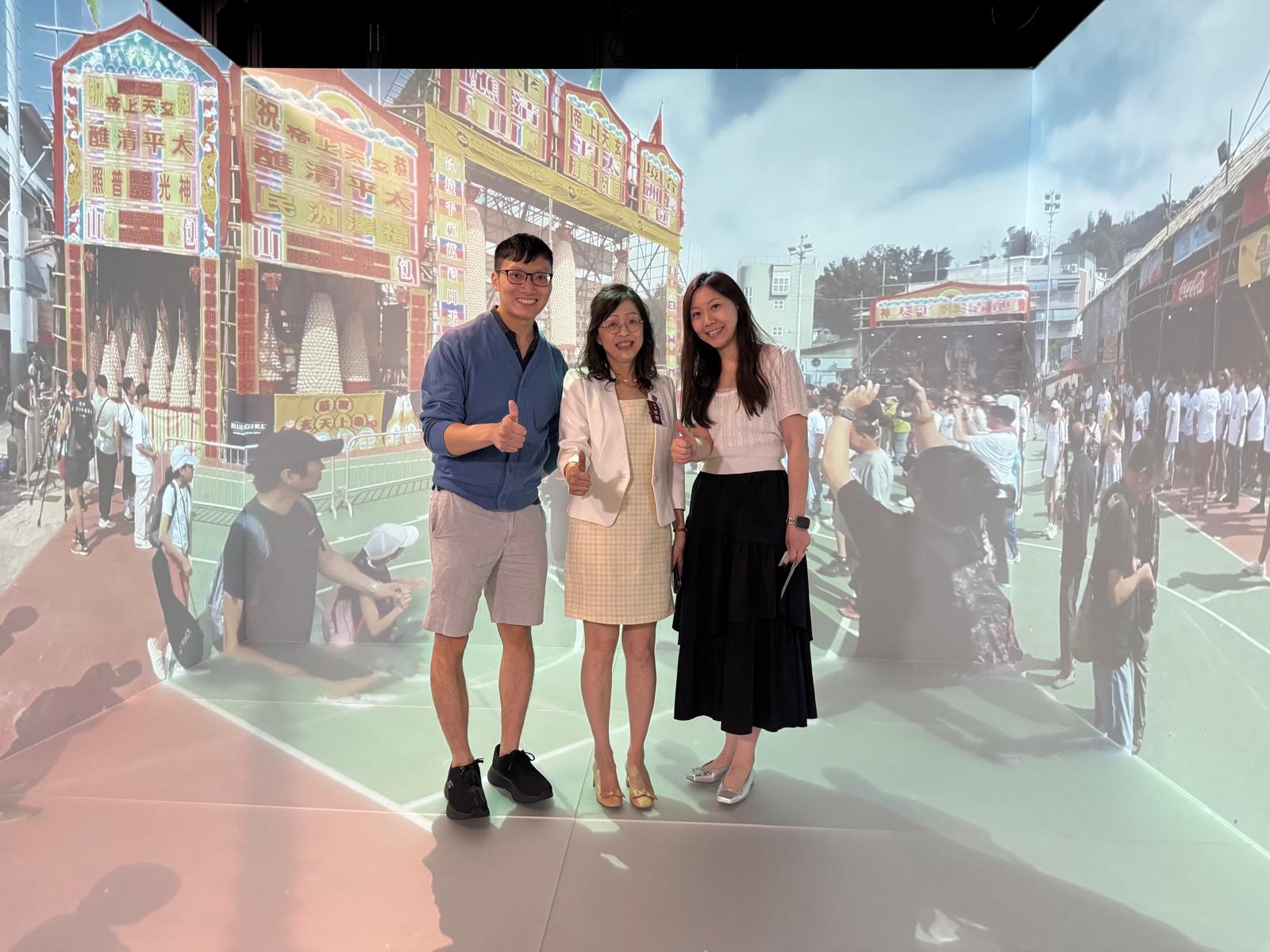 On April 11, 2026, Hong Kong Shue Yan University (HKSYU) welcomed Sociology alumni back to campus for "The Real and Virtual in Flux: Cheung Chau Jiao Festival Mixed Reality Tour." Ryan Ku Kin Sing (left), Executive Officer at the Innovation and Technology Commission, and Vienne Lau Tsz On (right), Senior Project Officer at the Vocational Development Programme Office, attended the launch led by Professor Selina Ching Chan. The initiative, "Metaversing Intangible Cultural Heritage," utilizes mixed reality to document and promote the Cheung Chau Jiao Festival. Their participation highlighted the vital synergy between sociological inquiry and emerging art technology in preserving Hong Kong’s cultural identity.