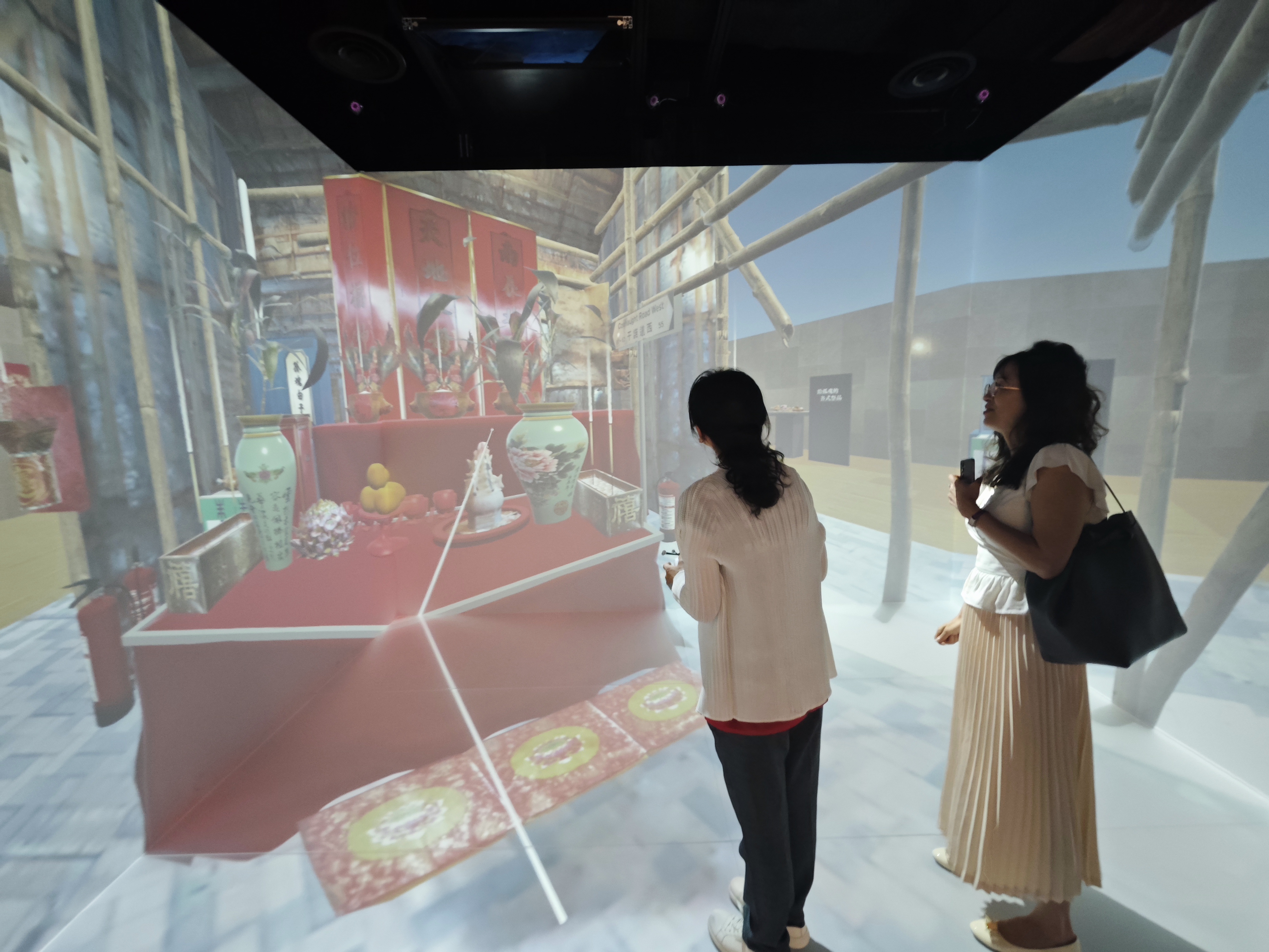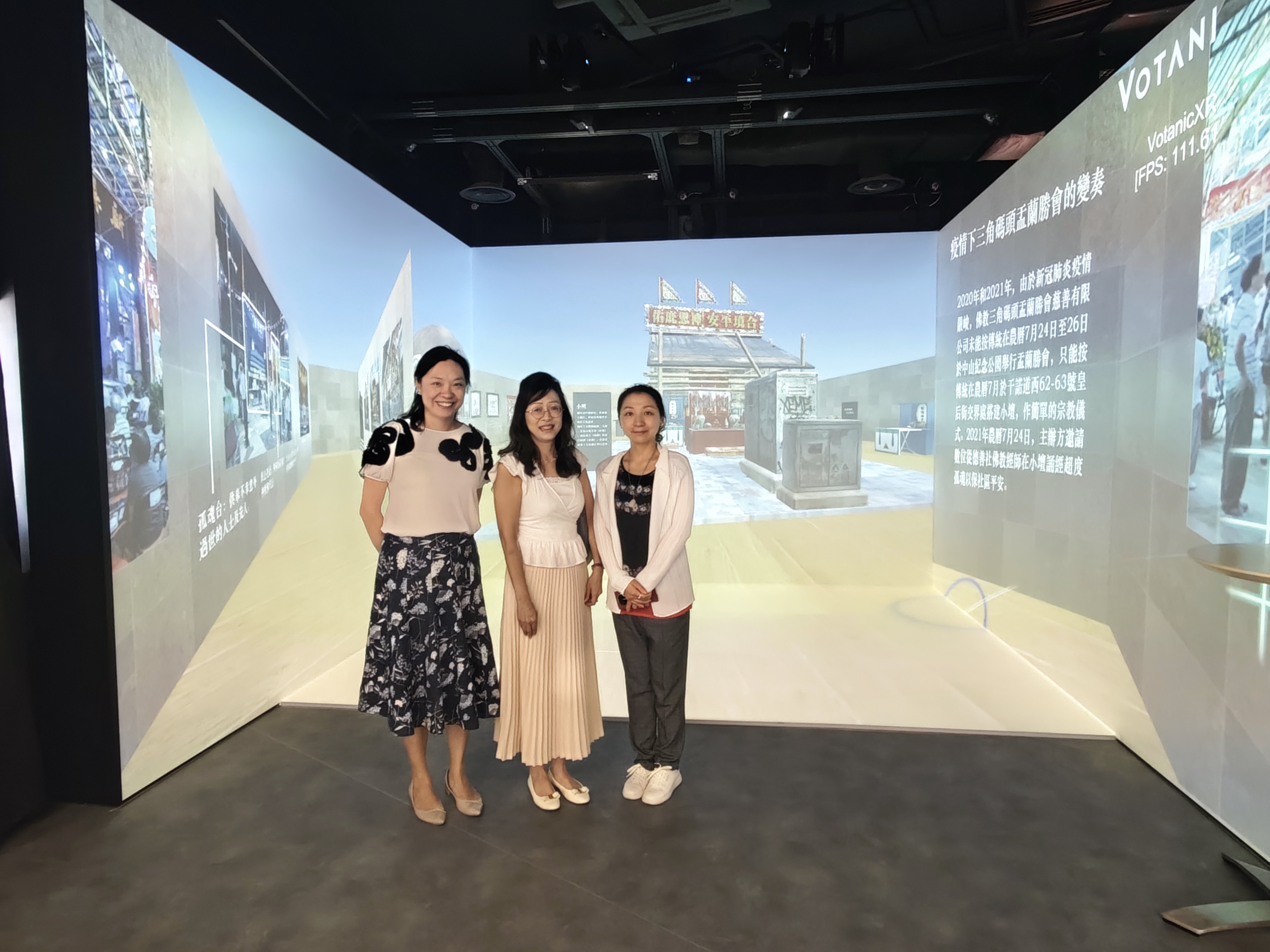 (From left) Prof. Libby Chan, Prof. Selina Chan, and Director Paula Du view the Hong Kong Yu Lan Festival virtual exhibition, featuring Professor Selina Chan's recent research.