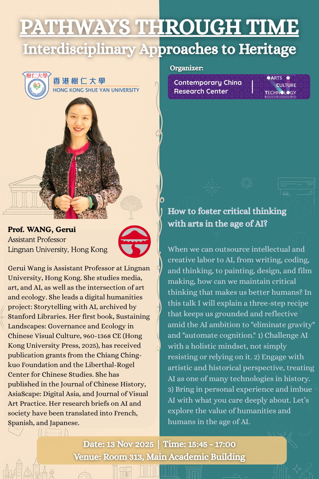 Guest Lecture: "How to foster critical thinking with arts in the age of AI?" with Dr. Wang Gerui